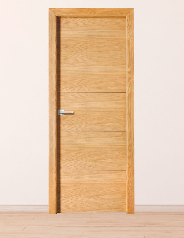 Modelo moderno y tradicional de puerta de madera Block en madera. Se adapta a cualquier ambiente y habitación aportando calidez  y belleza. Pídenos presupuesto sin compromiso de tu puerta de madera.